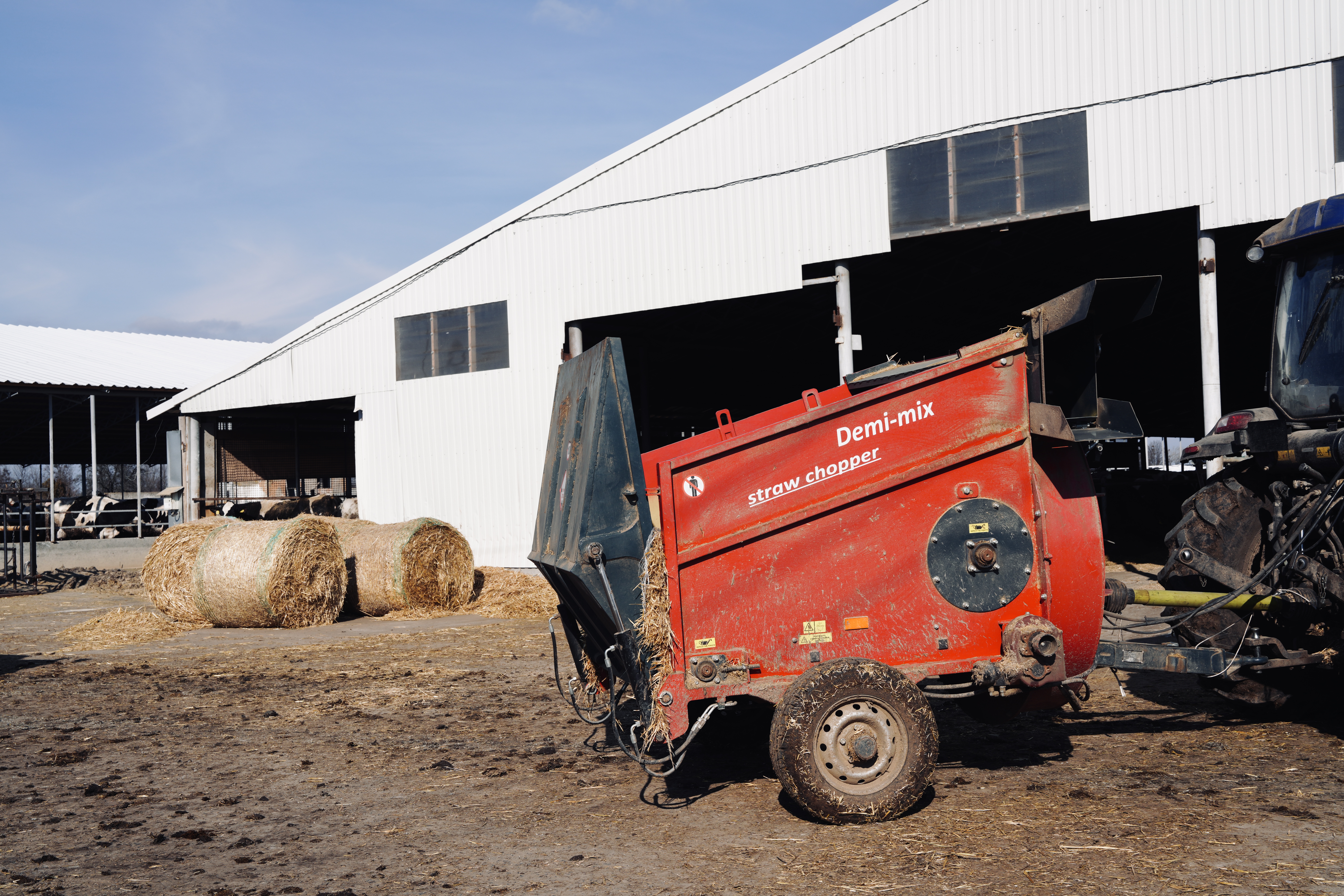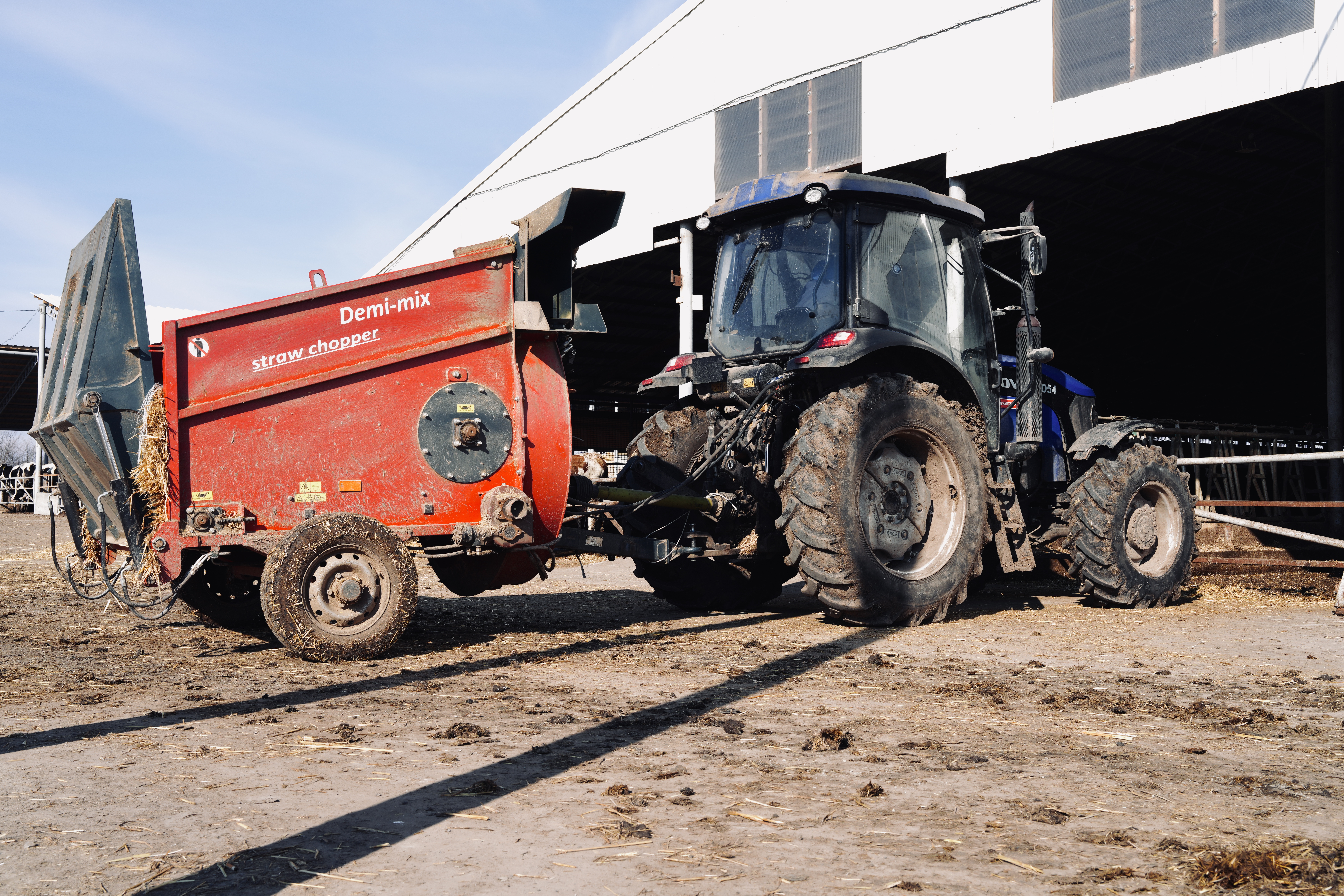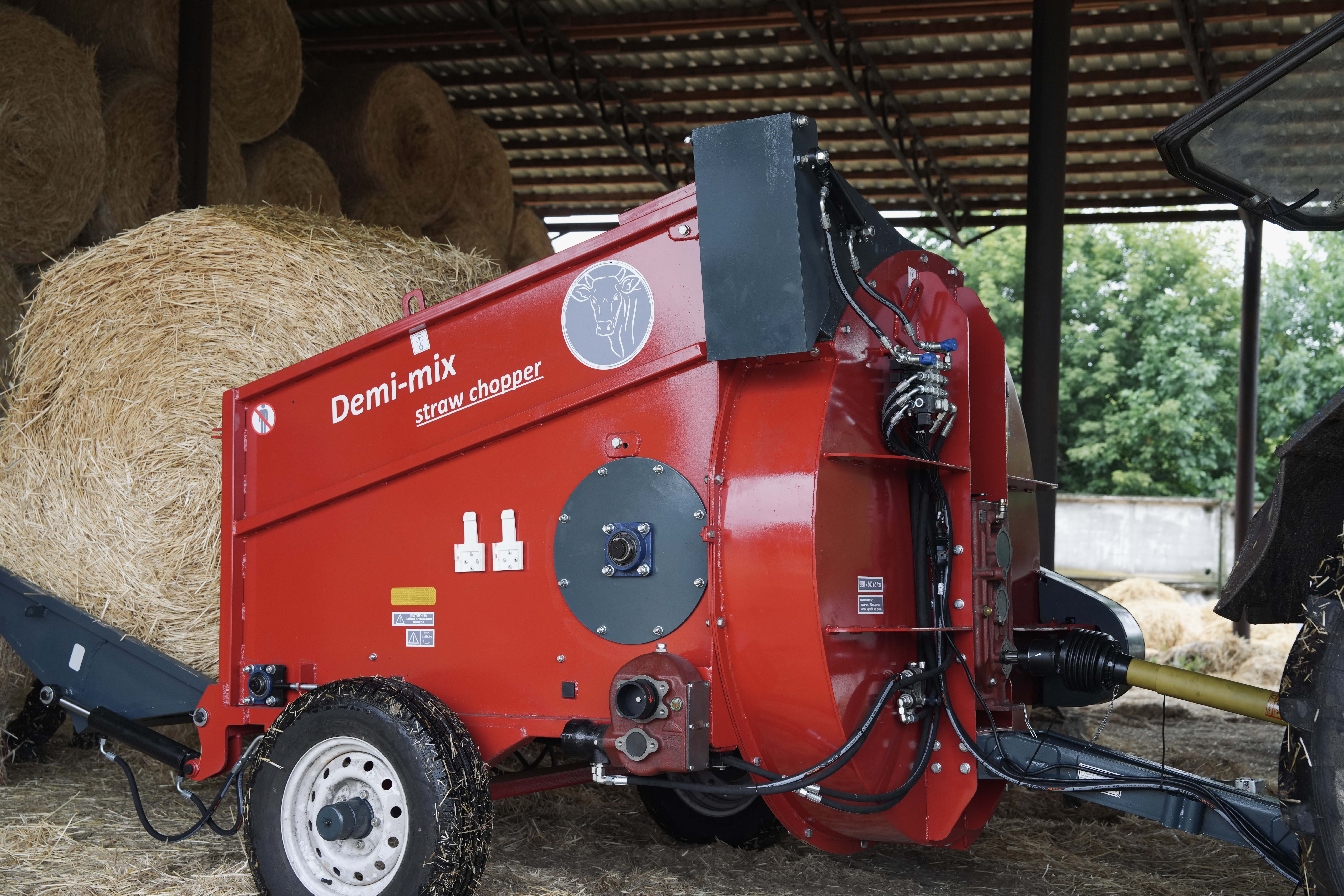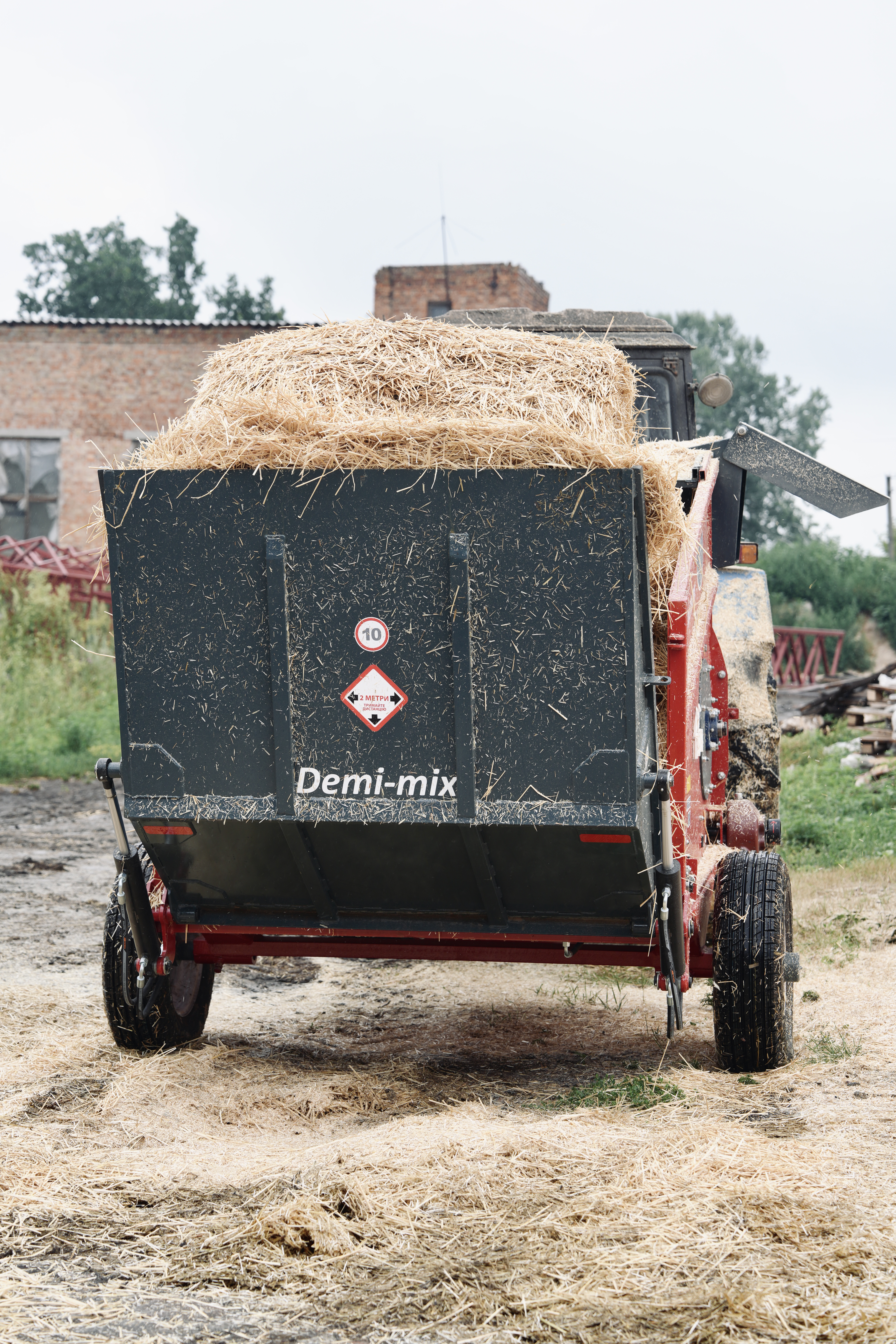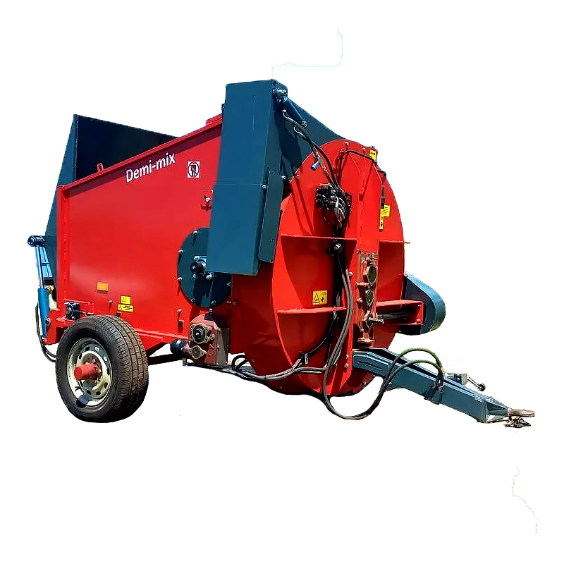 Причіпний подрібнювач соломи та сіна Demi-mix. Використовується для подрібнення та роздачі сухих кормів (солома, сіно).
